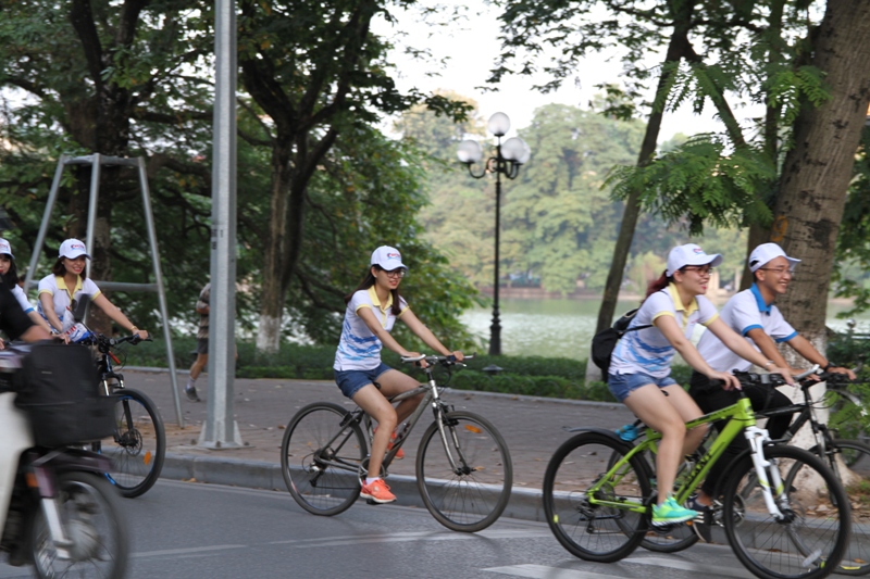 Lorsqu’arrive le week-end, on peut voir des jeunes arpenter les rues de Hanoi à vélo. Mais visiblement, la petite reine - ainsi surnomme-t-on le vélo depuis la fin du 19e siècle, en l’honneur d’une reine des Pays-Bas dont c’était le moyen de locomotion favori - est plutôt l’apanage des femmes, jeunes ou moins jeunes.
