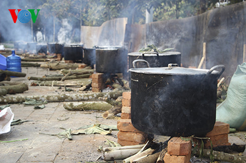Parallèlement à la confection des banh chung, dans le village culturel et touristique des ethnies vietnamiennes, dans les espaces réservés aux Thaï et Muong, on prépare également les gâteaux traditionnels de ces ethnies. L’occasion pour les visiteurs de découvrir les traditions culinaires de ces minorités ethniques.