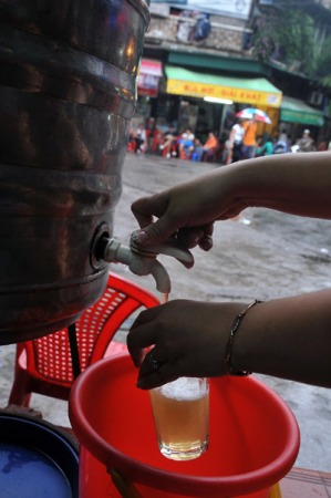 (VOVworld) - Lorsqu’ils séjournent à Hanoi, les visiteurs étrangers passent tous par le vieux quartier. Ils y trouvent bien sûr de vieilles maisons aux murs tapissés de mousse, de petites échoppes où les artisans sont à pied d’œuvre, et de manière générale, un art de vivre absolument inimitable. Et quand ils commencent à se sentir fatigués d’avoir trop marché, ils peuvent toujours faire une pause dans de petites gargotes : on en trouve partout. Et pour ce qui est de se rafraîchir, quoi de mieux qu’une bonne bière pression ? Là aussi, on en trouve partout : ça coule à flot !