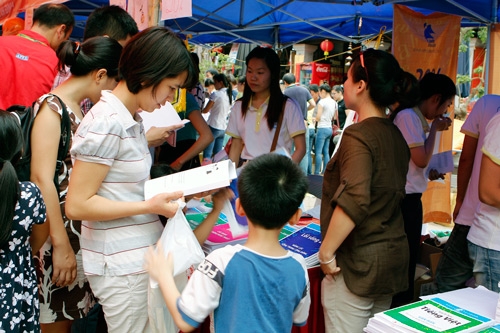 La journée de la lecture qui a eu lieu récemment au temple de la littérature, à Hanoi, a donné lieu à un véritable chassé-croisé de libraires et d’éditeurs, tous venus présenter des ouvrages aussi riches que variés. Littérature, littérature enfantine, sciences, éducation... Il y en avait pour tous les goûts et surtout pour tous les âges, même s’il semblait bien que l’âge tendre fût tout de même un peu privilégié! Les éditions Kim Dong avaient ainsi réservé un espace aux enfants. 5 mètres carrés, de petits tabourets, des livres mis à disposition, et le tour était joué : les jeunes bibliophiles en culotte courte n’avaient plus qu’à s’installer pour bouquiner paisiblement sous l’oeil attendri de leurs parents. Tran Thi Tuyet Trinh, par exemple, y avait amené son enfant. Comme mon enfant aime bien lire, je l’ai emmené ici, au stand des éditions Kim Dong, nous dit-elle. C’est bien qu’il y ait des manifestations de ce genre, mais ce serait encore mieux s’il y avait de la place pour tout le monde!