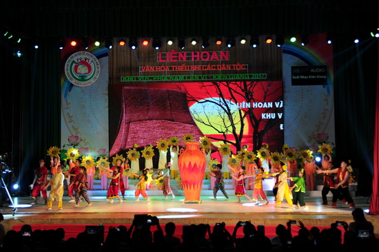 Durant le festival, les participants se sont rendus dans différentes localités de la province de Kien Giang pour présenter des spectacles de chant et de danse et rencontrer les enfants locaux. Ils ont aussi visité des sites naturels et historiques dans ces localités.