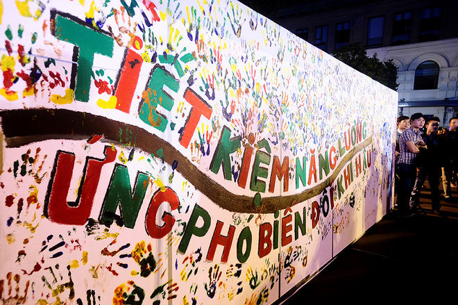 Dès le début du mois de mars, les jeunes de la capitale se sont mis à l’heure de la Terre. Le 22 mars, à 20h30, soit 6 jours avant la manifestation de ce samedi soir, des dizaines de milliers d’élèves, d’étudiants, de volontaires ont éteint les lumières et les équipements électriques superflus pendant toute une heure. 1.200 bougies ont été allumées, formant une carte en S du Vietnam, des étoiles ou encore des fleurs. Nguyễn Bích Phượng, étudiante à l’académie de presse et de communication, a dit: « Je voudrais sensibiliser les étudiants aux problèmes de l’utilisation des énergies et du changement climatique. Cette Terre est la nôtre, alors c’est à nous qu’il appartient de la rendre plus belle, plus propre et plus verte… »