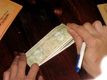 Tout y est, c’est vrai, et même le menu est d’époque: riz entremêlé de patates douces, gateaux de riz, soupe de pâte de riz sans viande, celle-là même que les hanoiens surnommaient non sans malice «soupe sans pilote» en faisant référence aux avions américains abattus… Pour qui a vécu l’époque du rationnement, cette gastronomie quelque peu frugale a tout de la madeleine de Proust. Et puis, lorsque l’on vous sert tout ça dans de la vaisselle en acier émaillé, il faut reconnaître que ça a son charme! Pour être servi, là encore, le client est prié de s’en tenir aux usages en rigueur à l’époque: il doit acheter des tickets correspondant à chaque plat et faire la queue. Et naturellement, si un blessé de guerre se présente, il est prioritaire. Alors, des tickets, il y en a de 3 sortes: les B1 pour les plats, les B pour les boissons ordinaires et les A pour les boissons faites maison.