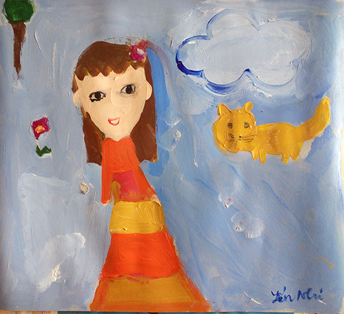 Comme le suggère le titre de l'exposition, les oeuvres présentées sont d'une simplicité... enfantine!... Elles se rapportent bien souvent à la vie quotidienne des jeunes artistes en herbe. Toute une famille représentée sur fond de fleurs, des chats, des chiens... Ce sont des scènes pleines de fraicheur et de poésie. Certains dessins portent sur des fêtes populaires telles que la fête de la mi-automne, avec les danses du dragon, de la licorne et les processions de lanternes en forme d’étoile. D'autres sortent tout droit de l'imagination des enfants.
