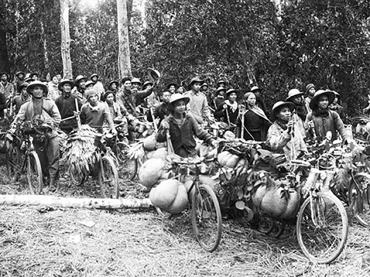 Pendant toute la durée de la bataille de Diên Biên Phu, malgré les bombardements de l’ennemi, chaque groupe de transport, que ce soit avec des vélos, avec des charges sur le dos, des chevaux de bât ou même des radeaux, a transporté des armes, de la nourriture et des médicaments sur des centaines de kilomètres de montagnes escarpées et de cols dangereux.