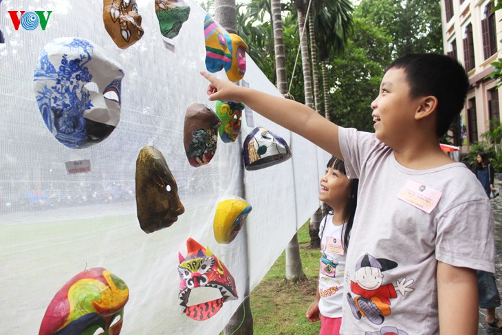 Dimanche le 13 septembre, au Musée des Beaux-Arts du Vietnam… près de 300 enfants sont réunis pour participer à la première journée de l’opération « Créons des masques vietnamiens pour célébrer la fête de la mi-automne ». Ils s’initient à l’art du papier mâché et à celui, parfois ardu, du pinceau. Mais ils apprennent aussi à faire la différence entre un masque vietnamien et un masque venant d’un autre pays.