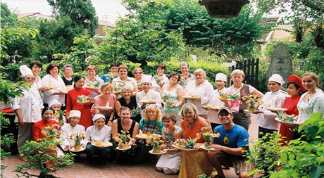 | Les touristes étrangers au restaurant végétarien Tinh Gia Vien (source : Internet) |