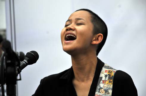6 concerts en 3 semaines, et tous très différents ! Qui dit mieux ? Si la troupe de musique traditionnelle de la compagnie de cirque « Mon village » proposait une ambiance rurale typique du delta du fleuve Rouge, la jeune chanteuse-compositrice Le Cat Trong Ly amenait son public vers les contrées les plus lointaines du pays, dans les montagnes du Nord-Ouest ou les hauts plateaux du Centre, en faisant intervenir divers instruments de musique ethnique : guimbarde, gongs… Le Cat Trong Ly : « J’adore ce concert. C’est une chance pour moi de me produire dans un espace nouveau, de vivre une expérience nouvelle. »
