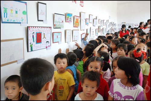 Accompagnant sa mère à l’exposition, la petite Nguyen Minh Ngoc regarde attentivement les dessins en espérant y trouver une de ses oeuvres à l’avenir: