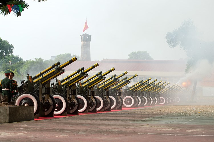 L’Hymne national était rythmé par les sons des obus tirés depuis la Cité royale de Thang Long (photo : Hải Thịnh).