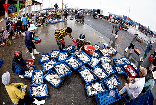 Ces jours-ci, le port de pêche de Thọ Quang (Danang) est particulièrement animé. Des dizaines de bateaux arrivent en même temps, vendeurs et acheteurs se bousculent.