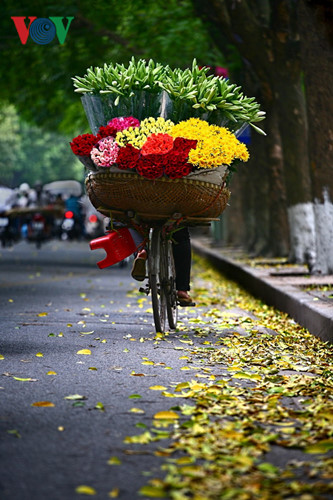 Partout à Hanoi, on peut voir des fleuristes ambulantes transportant sur leurs bicyclettes des lys blancs.