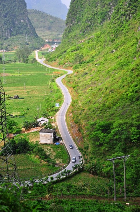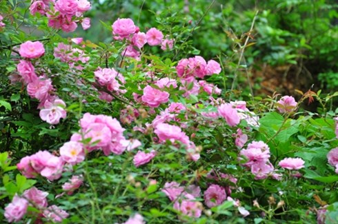 La route est bordée de fleurs.