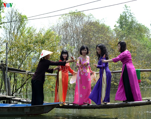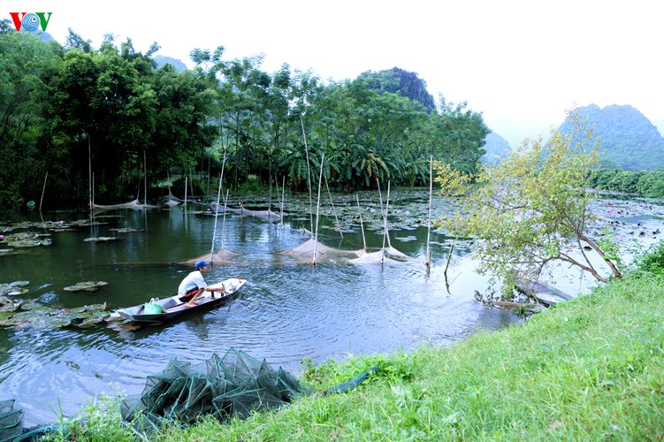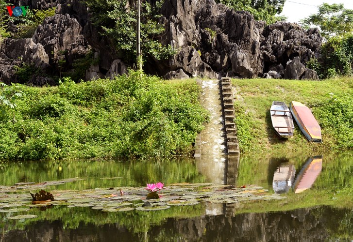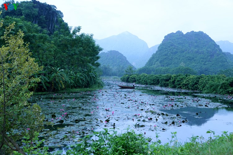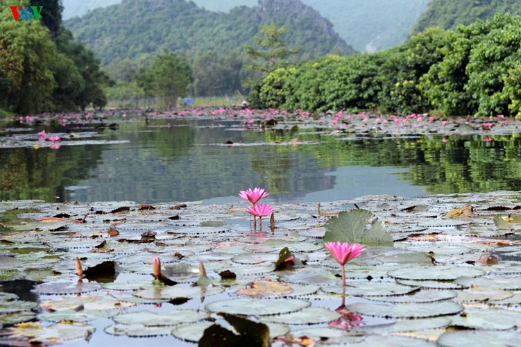 VOV.VN - Loin des pèlerinages printaniers à la pagode des parfums en banlieue de Hanoï, lorsqu’ils se promènent au bord du ruisseau Yên, les touristes peuvent admirer les premières fleurs de nénuphars dans un cadre serein et paradisiaque.