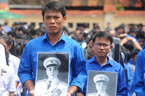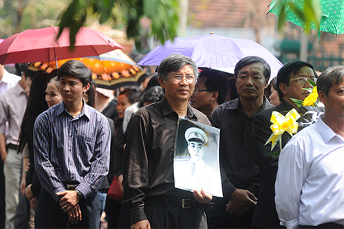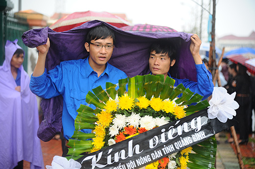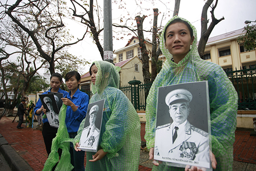| Des averses ne peuvent pas empêcher les habitants de Quang Binh de venir rendre un dernier hommage au général |