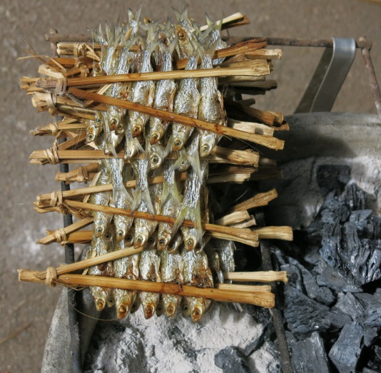 Le poisson grillé est un plat prisé des touristes. Ces minuscules poissons grillés au feu de bois peuvent se consommer en entier.
