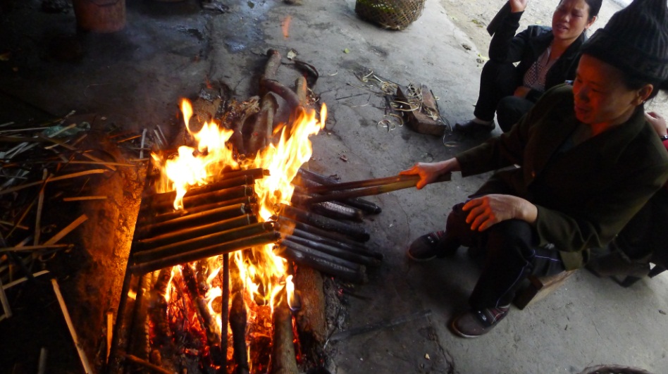 Le « com lam » - riz gluant cuit à la vapeur dans un tube de bambou- est un plat spécifique des zones montagneuses du Nord Vietnam.