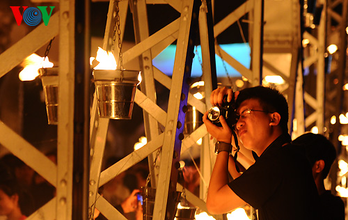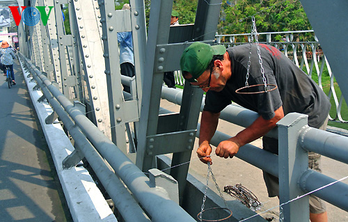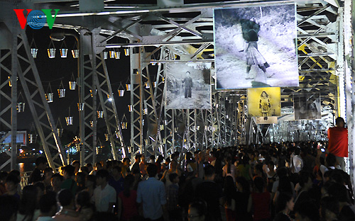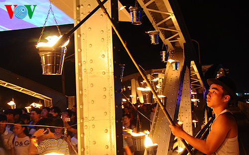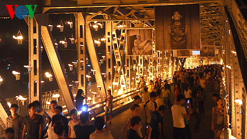Après 30 minutes, le pont était illuminé par 3.000 bougies perchées sur ses |
