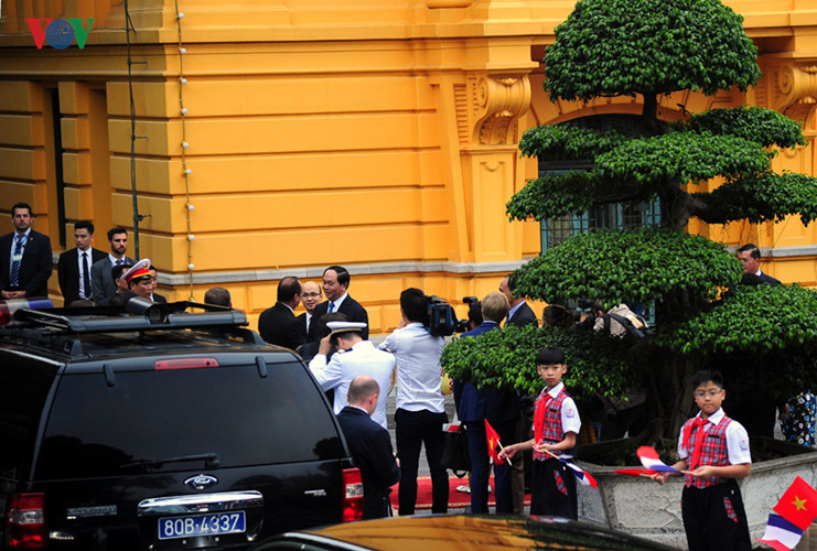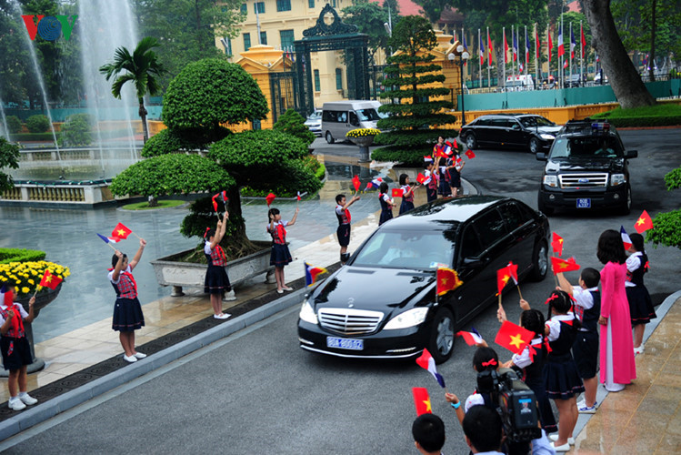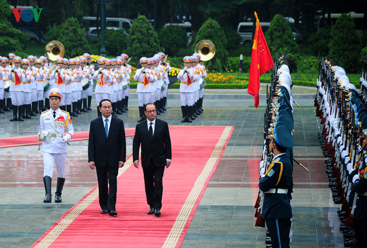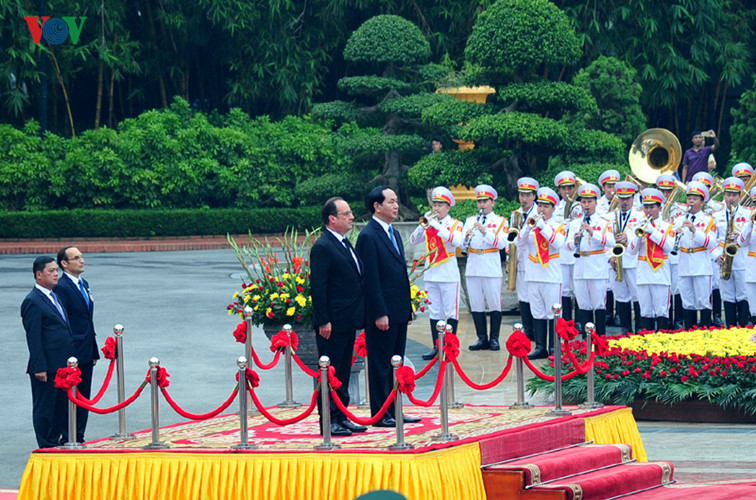 (VOVworld) - La cérémonie d’accueil officielle en l'honneur du président français a commencé à 8h30 mardi matin au Palais présidentiel à Hanoi.