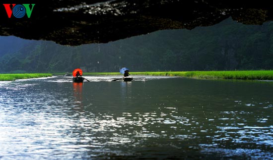 Le site de Tam coc est également appelé la baie d'halong terrestre en raison de son paysage et de ses rochers en pains de sucre et de ses grottes similaires à celles d'Halong. Agréable ballade en barque sur la rivière le long des rizières et de bananiers (environ 2 heures aller et retour) .