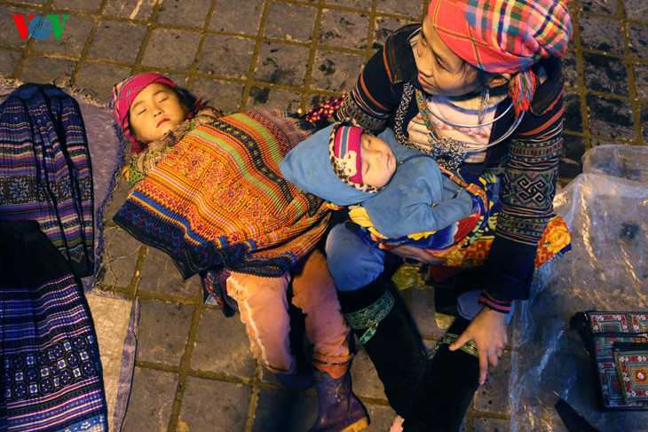 Ces enfants qui vont au marché avec sa mère pour vendre des vêtements en brocatelle sont tombée dans les bras de Morphée.
