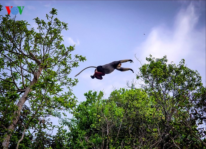 Les doucs peuvent faire des bonds d’une dizaine de mètres (photo : Minh Phương).