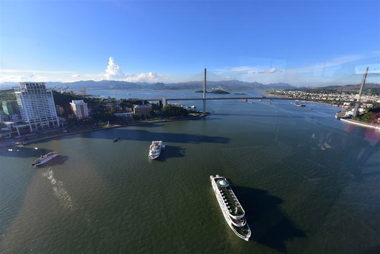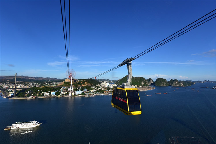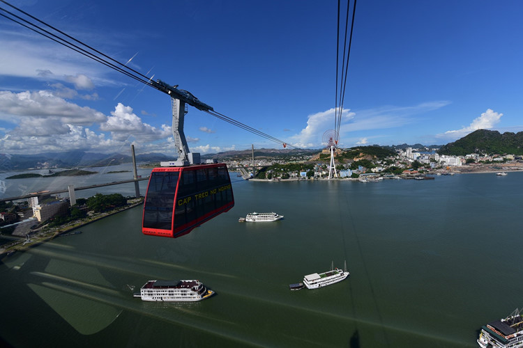 Nữ Hoàng traverse en hauteur la baie de Cửa Lục, reliant la plage de Bãi Cháy au mont Ba Đèo (qui est rattaché à l’unité administrative de la ville de Halong).