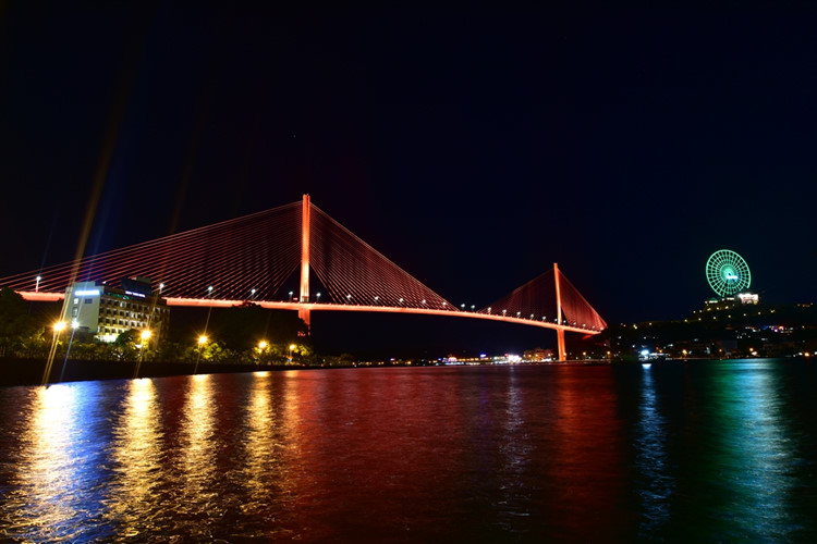 A son sommet, à 215m d’altitude, les touristes peuvent admirer la beauté de la ville patrimoniale la nuit, avec au milieu le pont de Bãi Cháy.