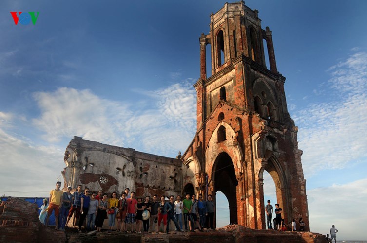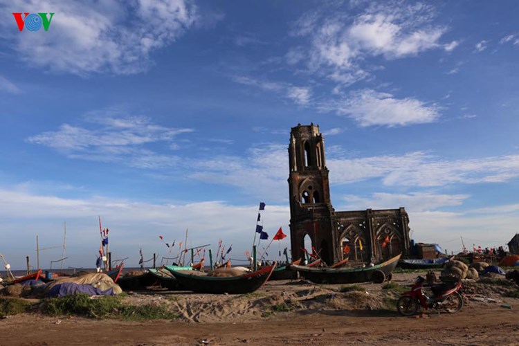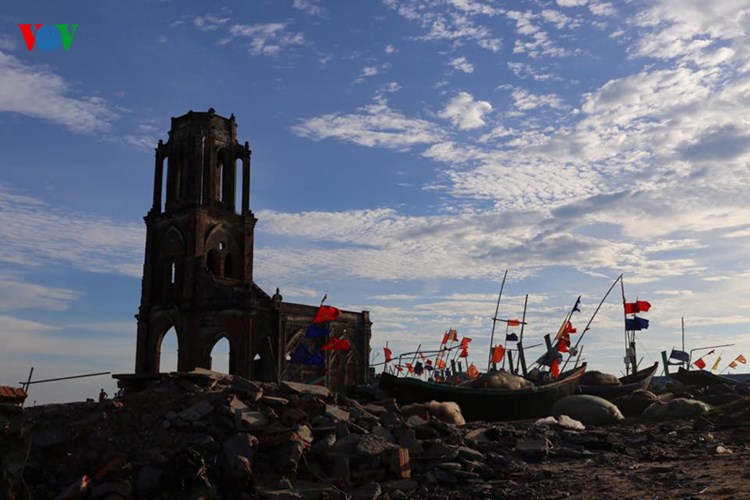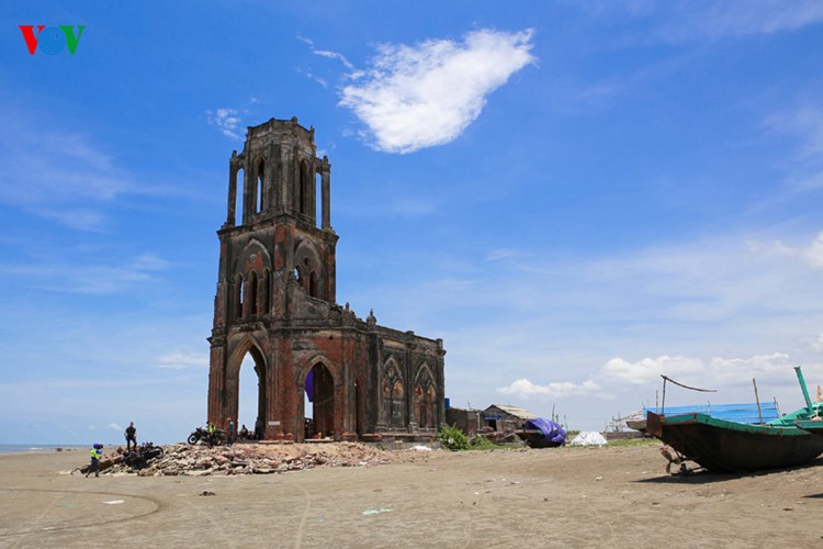 Les marées hautes et la montée du niveau de la mer ont obligé les habitants à reculer, à déménager loin à l’intérieur du continent. Il ne reste plus que l’église du Cœur (Trái Tim), sérieusement endommagée par les tempêtes. (Photo: Tiến Dũng)