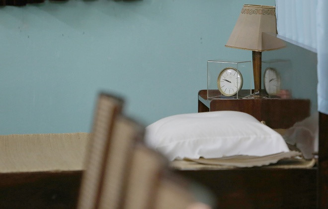 L’horloge sur la table de nuit est fixé sur l’heure où le dirigeant s’en alla : 9h47.