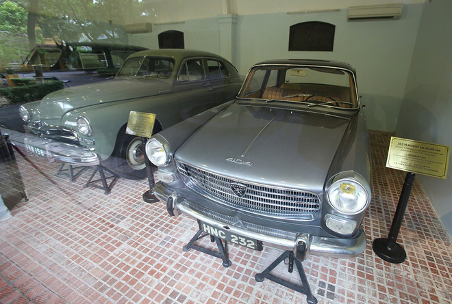 A gauche de la maison 54, se situe un petit garage où sont exposées des voitures blindées ayant servi au Président Ho Chi Minh : une Pobieda, une Peugeot 404, une Zil et une Volga.