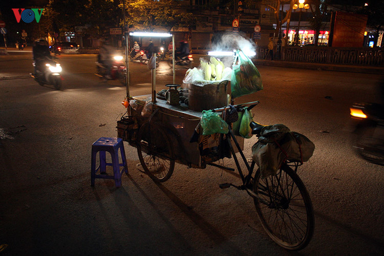 L’odeur du maïs bouilli et de la patate douce grillé fait partie des parfums de la nuit d’hiver hanoienne.