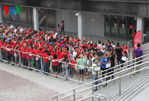 Les spectateurs font la queue devant le stade national de Singapour avant la cérémonie d’ouverture. (Photo: Trọng Phú) |