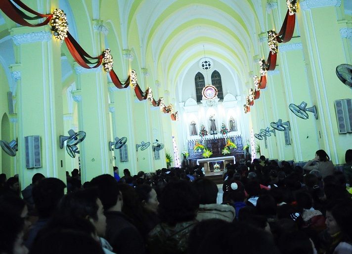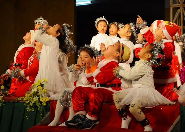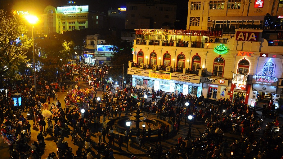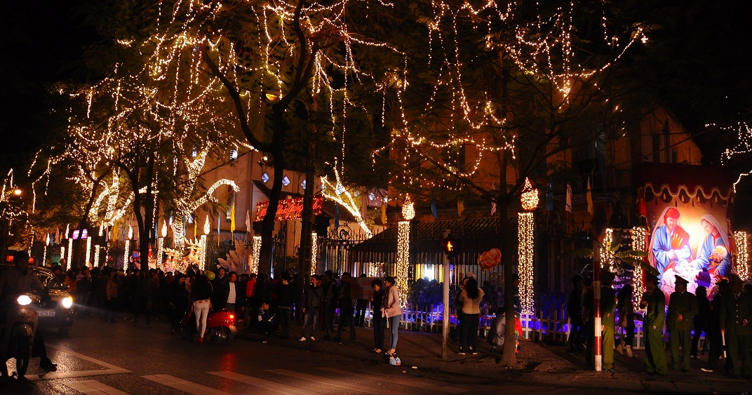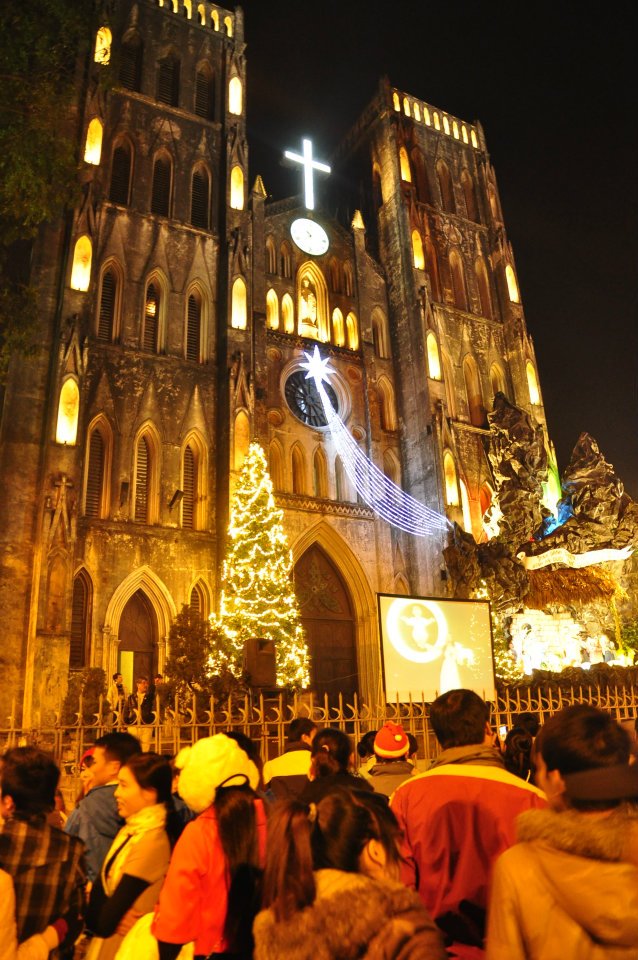(VOVworld) - À la veille de Noël, malgré le froid piquant, de milliers de gens, catholiques et non croyants confondus, descendent dans les rues de Hanoï pour fêter la naissance du Christ. Ils affluent vers les églises et les cathédrales pour la traditionnelle messe de minuit. Les appareils photos crépitent prenant tour à tour sapins, devantures de magasins, illuminations, et Pères Noël. Les restaurants et les bars sont bondés et décorés. Dans certains quartiers, des maisons ou des façades accueillent des crèches qui sont installées par les croyants et qui deviennent des attractions pour les non croyants. C’est l’occasion de sortir, de s’amuser, de manger et de se faire des petits cadeaux. En effet, le père Noël et son traîneau bien garni font aussi rêver des millions d’enfants vietnamiens.