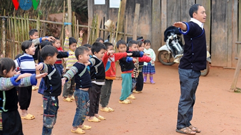 VOV.VN - Cứ A Giàng, de l’ethnie Mông, est l’un des très rares maîtres d’école en maternelle qui existent, au Vietnam, ce métier étant très souvent l’apanage des femmes. Il travaille depuis 2 ans à l’école maternelle de Lao Chải, district de Mù Cang Chải, province de Yên Bái.