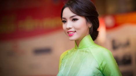 VOV.VN - Miss Vietnam 2014, Nguyên Cao Ky Duyên, a participé au programme artistique «Aspiration des jeunes-La patrie nous appelle» organisé le soir du 28 décembre 2014 au palais culturel d’amitié à Hanoï. Elle était habillée en tunique traditionnelle, exprimant l’élégance, la douceur et la discrétion de la femme vietnamienne.