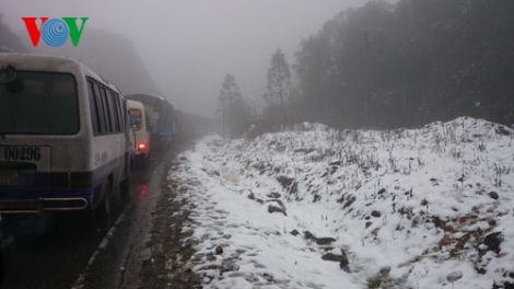 (VOVworld) - Vendredi 9 janvier à 22 heures, les premiers flocons de neige sont tombés sur le mont Hoang Lien Son (Lao Cai), à plus de 2000 mètres d’altitude. A Sapa, haut-lieu touristique du Nord-Ouest du pays, le verglas a fait son apparition.