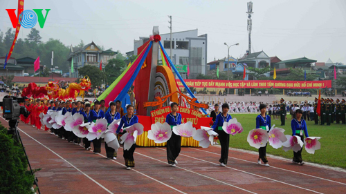 (VOVworld)- Les 60 ans de la victoire de Dien Bien Phu ont été célébrés en grande pompe ce mercredi dans la ville éponyme. Dès le petit matin, tous les axes conduisant au centre-ville étaient bondés et plus aucune place n’était disponible dans le stade municipal où la cérémonie officielle s’est déroulée. Dehors, des dizaines de milliers de personnes attendaient le défilé et la parade militaire. De grands écrans avaient été installés au centre de la Place du 7 mai, au pied du monument de la Victoire et à certains autres endroits du centre-ville pour que le plus grand nombre puisse suivre la cérémonie. Vu Quang Bao, un ancien combattant de Dien Bien Phu, habite maintenant dans cette ville : « Ce 60ème anniversaire est magnifique. Je suis tellement fier d’avoir participé à la bataille il y a 60 ans et de pouvoir raconter aux jeunes ce que j’ai vécu. »
