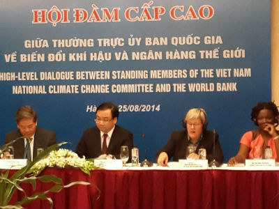 (VOVworld) - Ce lundi, le vice-Premier ministre Hoang Trung Hai, vice-président permanent du Comité national sur le changement climatique, s'est entretenu à Hanoi avec la vice-présidente de la Banque Mondiale chargée du changement climatique Rachel Kyte. Soulignant l'importance de la résilience au changement climatique pour le développement durable du Vietnam, Hoang Trung Hai a souhaité que cet entretien serve à promouvoir la croissance verte et l'économie à faible émission de carbone. Rachel Kyte a indiqué que sa visite au Vietnam visait à étudier les effets et risques potentiels du changement climatique sur le Vietnam. Elle a émis le souhait de discuter du développement de l'économie à faible émission de carbone, de l'adaptation au changement climatique, et du renforcement du rôle du Vietnam dans les efforts internationaux face à ce phénomène. Hoang Trung Hai et Rachel Kyte ont discuté des difficultés auxquelles le Vietnam devait faire face dans son processus d'adaptation au changement climatique. La délégation de la Banque mondiale a présenté plusieurs recommandations.