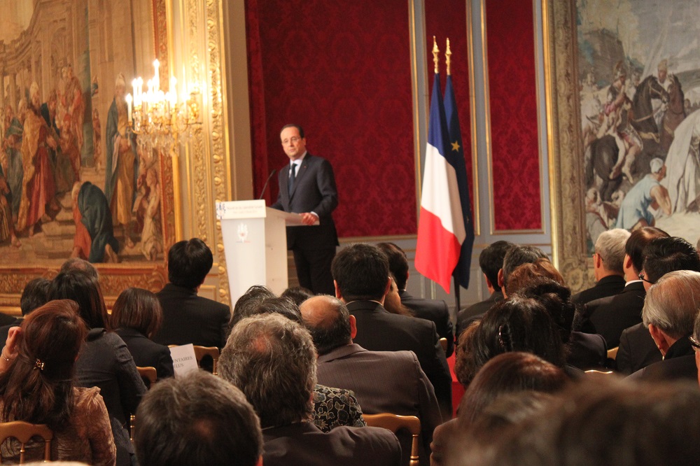 (VOVworld) – « Je m’intéresse beaucoup aux relations avec le Vietnam. J’irai au Vietnam cette année et je rencontrerai votre Premier Ministre ». C’est ce qu’a promis lundi le président français, François Hollande, à notre correspondant à Paris, lors d’une soirée du Nouvel an lunaire destinée à la communauté asiatique en France. Le chef de l’Etat français est sous le signe du cheval, qui représente l’énergie, la puissance, la mobilisation et l’audace. Selon lui, l’audace constitue un élément indispensable pour renforcer les relations franco-vietnamiennes. François Hollande déclare : « Avec le Vietnam, nous avons une saison particulièrement brillante sur le plan culturel. Et là aussi, je suis très attaché à la relation avec le Vietnam, et notamment sa participation à l’espace francophone. Nous sommes liés par l’histoire, par les épreuves, mais également là aussi par une communauté humaine particulièrement active. »