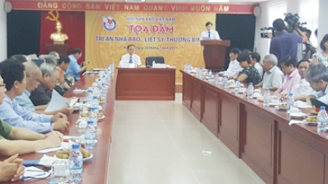 (VOVWORLD) - A l’occasion de la journée des invalides de guerre et des morts pour la Patrie, l’Association des journalistes vietnamiens a organisé, ce jeudi à Hanoï, une table ronde en hommage à ses membres qui se sont sacrifiés pendant la guerre.
