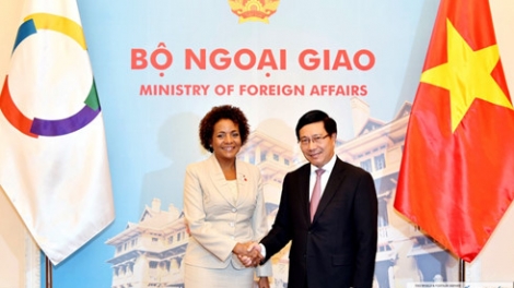 (VOVworld) - Poursuivant sa visite au Vietnam, la Secrétaire générale de la Francophonie, Michaëlle Jean, s'est entretenue ce mercredi matin avec le vice-Premier ministre et ministre des Affaires étrangères Pham Binh Minh.