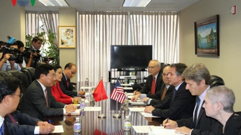 (VOVworld) - Le vice-Premier ministre et ministre des Affaires étrangères Pham Binh Minh a rencontré le 22 septembre le secrétaire d’Etat adjoint américain Antony Blinken, en marge de la 71ème Assemblée générale de l’ONU en cours à New York.