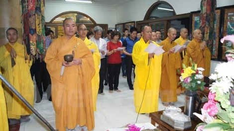 (VOVworld) - A eu lieu ce lundi dans la pagode de Khuong Viet sise à Paris, en France, une cérémonie de prière pour le repos de l’âme des 64 soldats vietnamiens tombés en 1988 sur le récif de Gac Ma dans l’archipel de Truong Sa (Spratleys) du Vietnam.