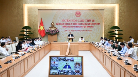 (VOVWORLD) - Le 7 octobre au soir, au siège du gouvernement, le Premier ministre Pham Minh Chinh a présidé la 16ᵉ session du Comité national de lutte contre la pêche illicite, non déclarée et non réglementée (INN), tenue en visioconférence avec 21 provinces et villes côtières.