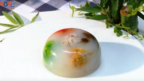 (VOVWORLD) - Patte et peau de cochon, patte de poulet, shiitaké, champignon oreille de Judas… À partir de ces simples ingrédients, on peut confectionner de la terrine en gelée, un plat délicieux et plébiscité des Vietnamiens. Trần Hồng Vân, de l’Association des chefs royaux du Vietnam, vous propose sa version en cinq couleurs. * Veuillez cliquer sur [CC] pour le sous-titre en français!
