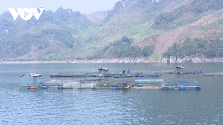 Le pisciculture en cages flottantes installées dans le réservoir de la rivière Noire. Photo: VOV |