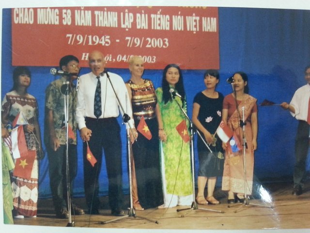 ![]() Iain Finley, Trish Clark et l’équipe anglophone de VOV5 lors d’une représentation artistique de VOV