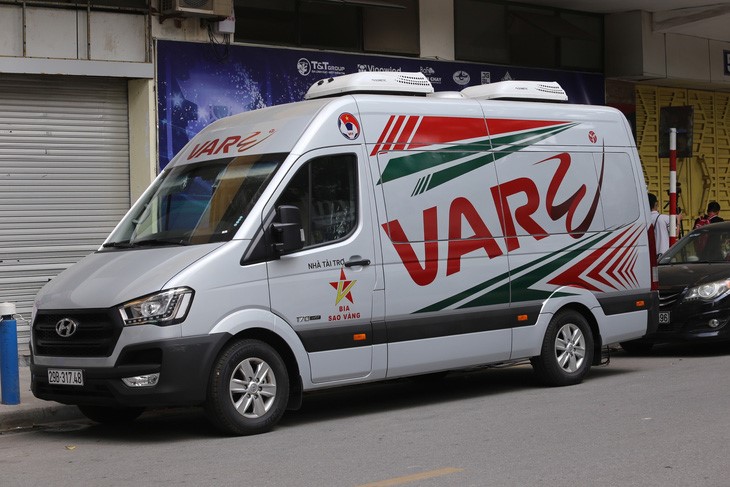 Salah satu dari dua kendaraan VAR pertama yang bertugas di V-League 2023. Foto: Duc Khue/tuoitre.vn |
