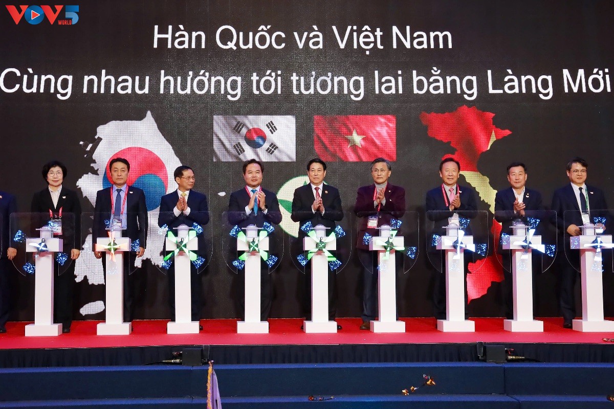 Presiden Luong Cuong bersama pimpinan Provinsi Gyeongsangbuk juga turut menekan tombol untuk memulai simbol “Kerja Sama Persahabatan Menuju Masa Depan”. (Foto: VOV) |